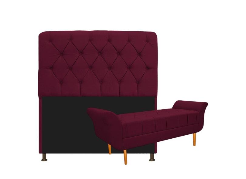 Kit Cabeceira Estofado Lady e Recamier Ari 195 cm King Size Suede Bordô - Amarena Móveis