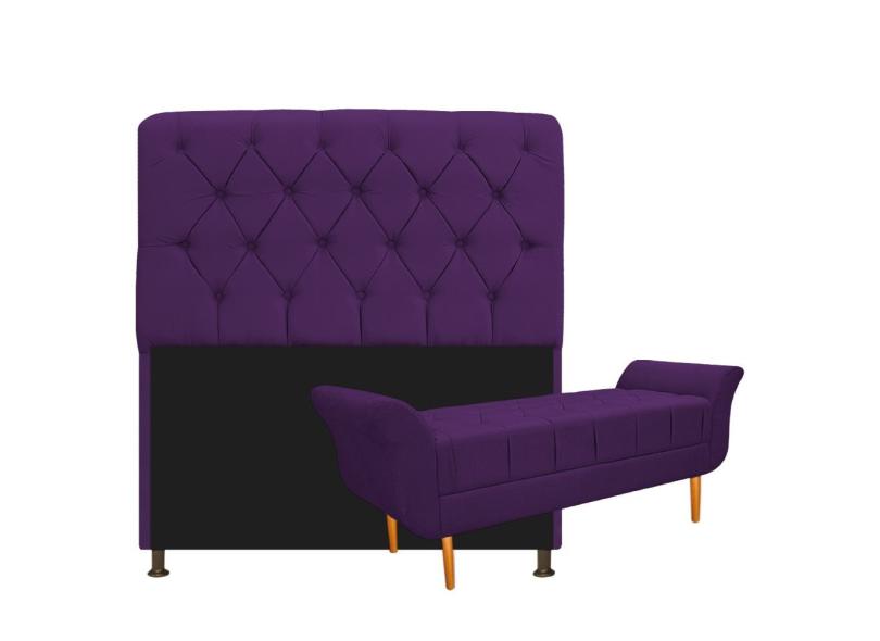 Kit Cabeceira Estofado Lady e Recamier Ari 195 cm King Size Suede Roxo - Amarena Móveis