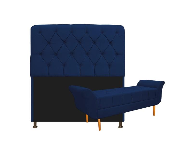 Kit Cabeceira Lady e Recamier Ari 90 cm Solteiro Suede Marinho - ADJ Decor