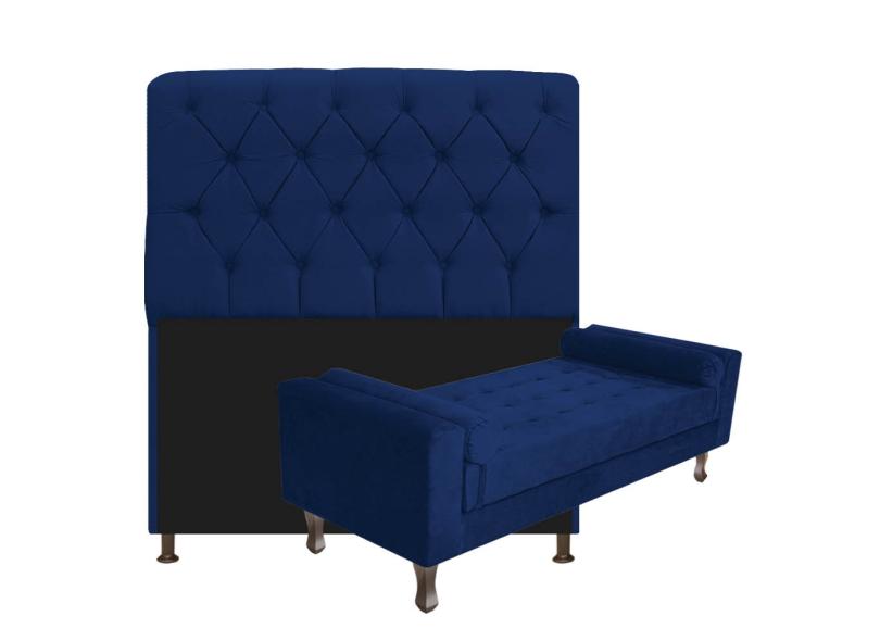 Kit Cabeceira Lady e Recamier Félix 195 cm King Size Suede Marinho - ADJ Decor