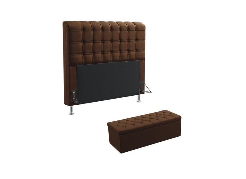 Kit Cabeceira Rana 160 Para Cama Queen e Calçadeira Sagitarius Couro Artificial Marrom Aradecor