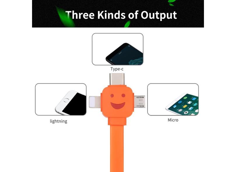 3 em 1 de carregamento Cabo de Dados Cabo Iluminação Noodle Cabos multifuncional telefone móvel cabo de carregamento 1M com portas relâmpago / Micro USB / tipo C para o iPhone / Samsung / Xiaomi / Huawei (laranja) Laranja