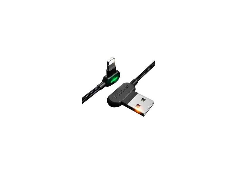 Cabo Carregador Usb Led Lightning Apple 90º 2.4a 300cm Preto