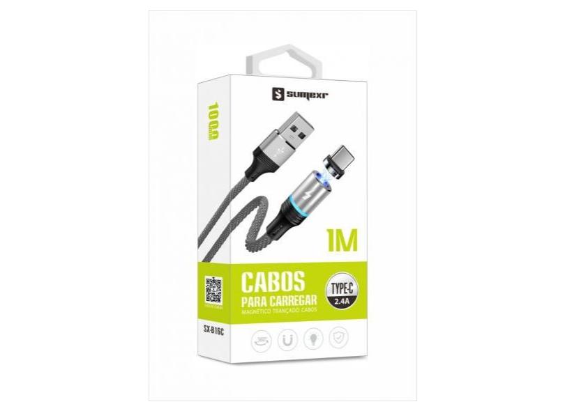 Cabo Magnético Imã USB Original Sumexr 1M 2.4A Tipo C Para Asus Zenfone 4 Pro ZS551KL