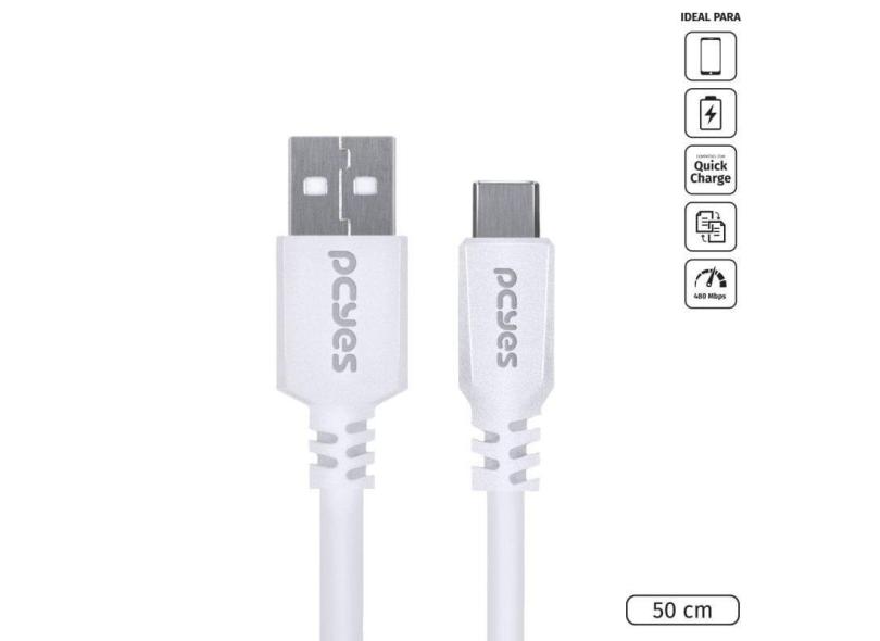 Cabo para Celular Smartphone Usb a 2.0 para Usb Tipo c 50 Cm Branco - Puacb-05