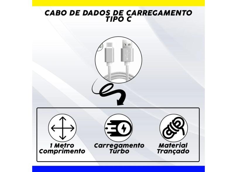 Cabo Usb C Dados Carga Tipo C Trançado Refoçado Rápido Turbo