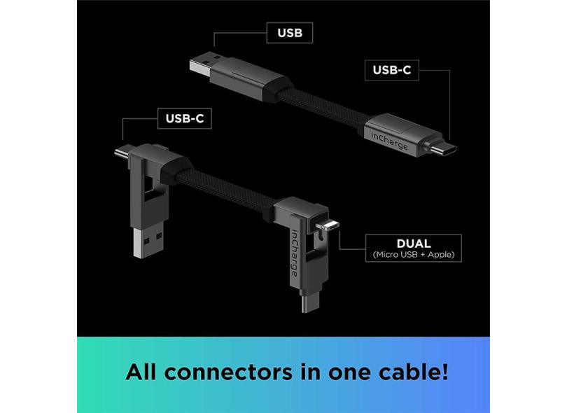 Incharge 6/6 max 6-em-1 alumínio usb cabo de carregamento USB-C tipo-c micro usb chaveiro magnético