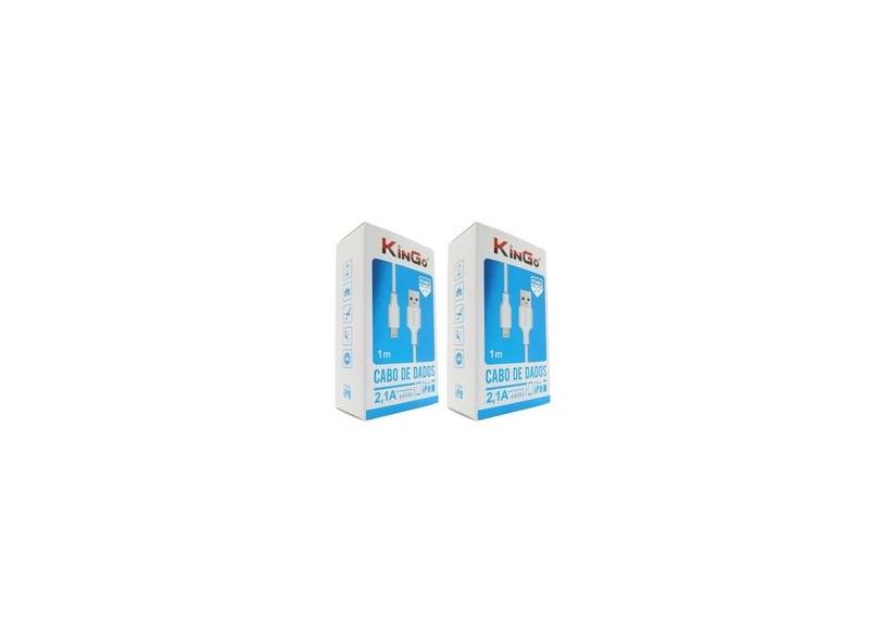 Kit 2 Cabos Lightning Kingo Branco 1M 2.1A Para Iphone 8