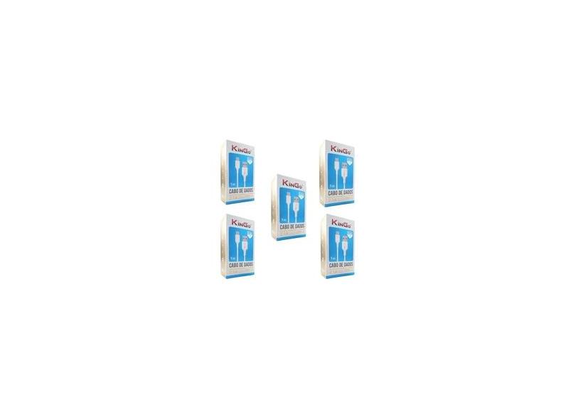 Kit 5 Cabos USB-C Kingo Branco 1m 2.1A para Redmi Note 9 Pro