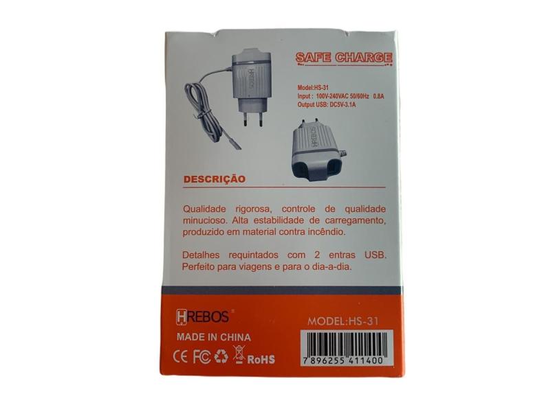 Kit Cabo Carregador Iphone Turbo 3.1A Hs-31 Hrebos