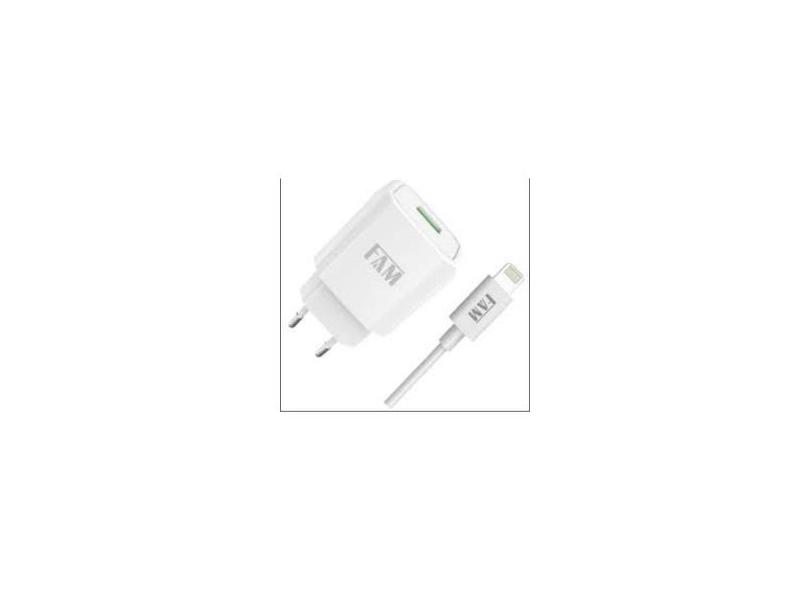 Kit Carregador de Tomada FAM FKT-1205 2.1A 120cm para Iphone Branco