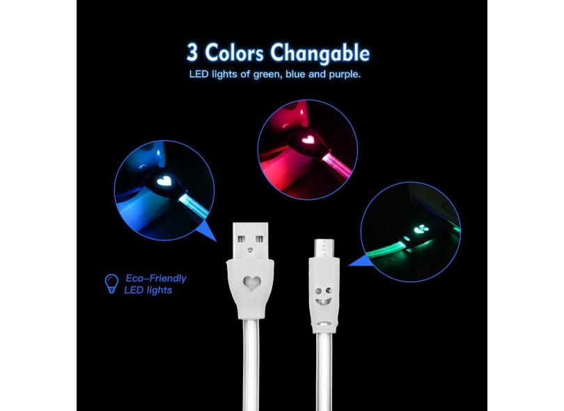Micro USB de carregamento LED Cabo Iluminação Noodle Cabos cabo do carregador do telefone móvel de dados para Samsung 1M