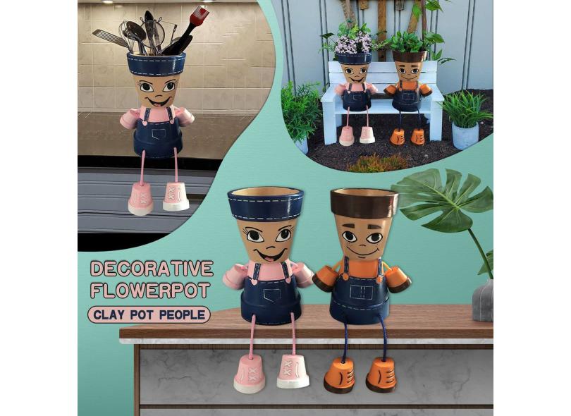 Plantador de vaso de barro em forma de criança country vaso de flores com decoração adorável