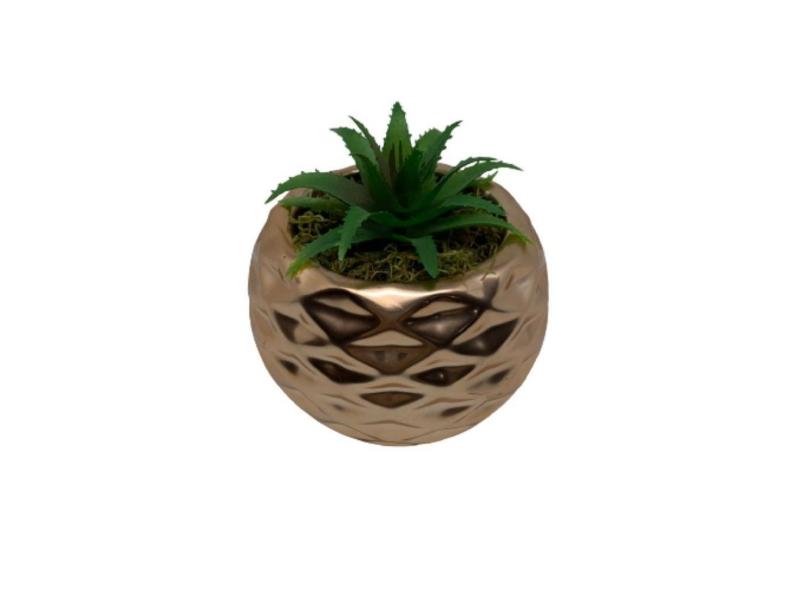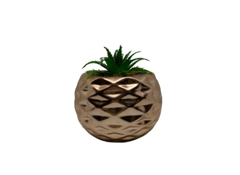 Vaso Decorativo Cerâmico Rose Gold Com Suculenta Artificial