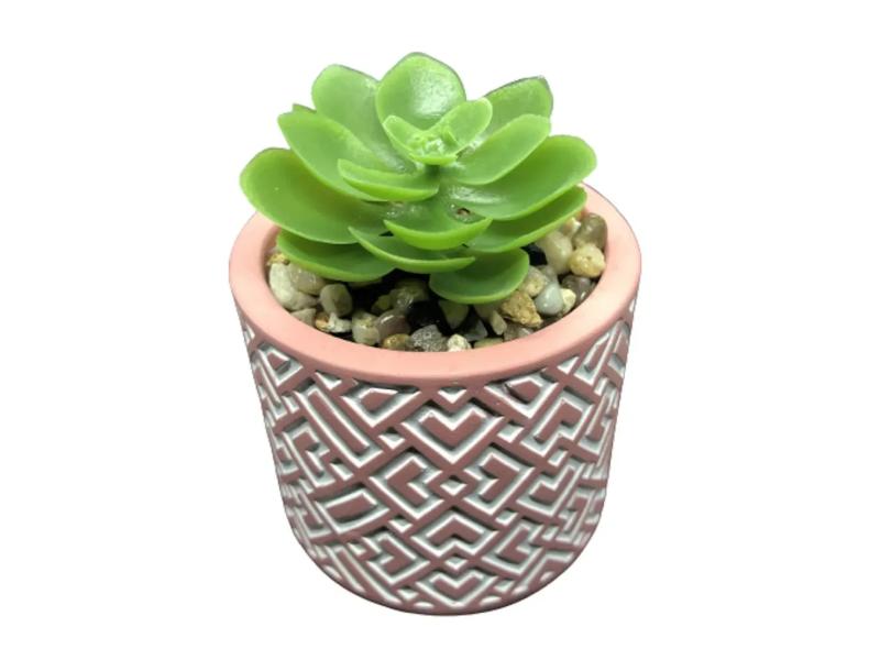 Vaso Porcelana Planta Suculenta Artificial Plástico Flor Vasinho Decorativo Cores 7x7cm Presente