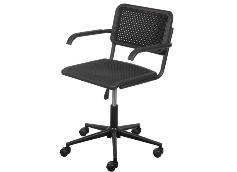 Cadeira com braço Cesca Polipropileno Preto Simulando Palha Preta Base Rodizio em Nylon Preto