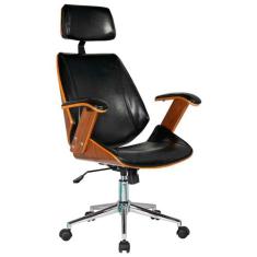 Cadeira De Escritório Presidente Giratória Madeira Liziê R02 Sintético Preto - Mpozenato