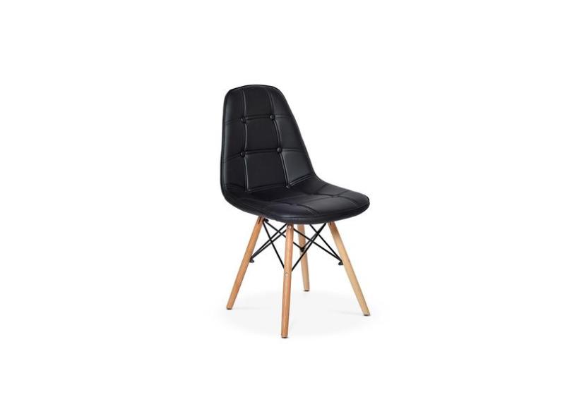 Cadeira Dkr Charles Eames Wood Estofada Boton Preta