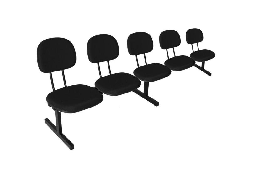 Cadeira Escritório Longarina 5 Lugares Estofada Ecoflex Preto
