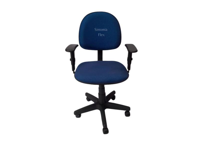 Cadeira executiva giratoria com braço de regulagem de altura e pistão a gás com base de ferro tecido azul