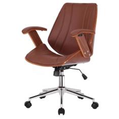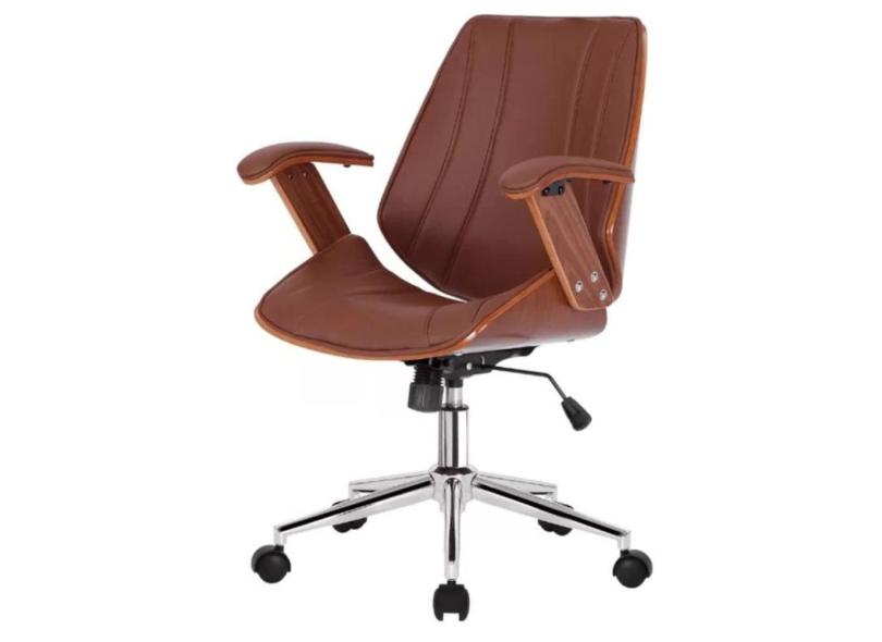 Cadeira Giratória Kopenhagenn Bergen Lisboa Fratini em Madeira Revestida em PU Marrom Base Rodízio