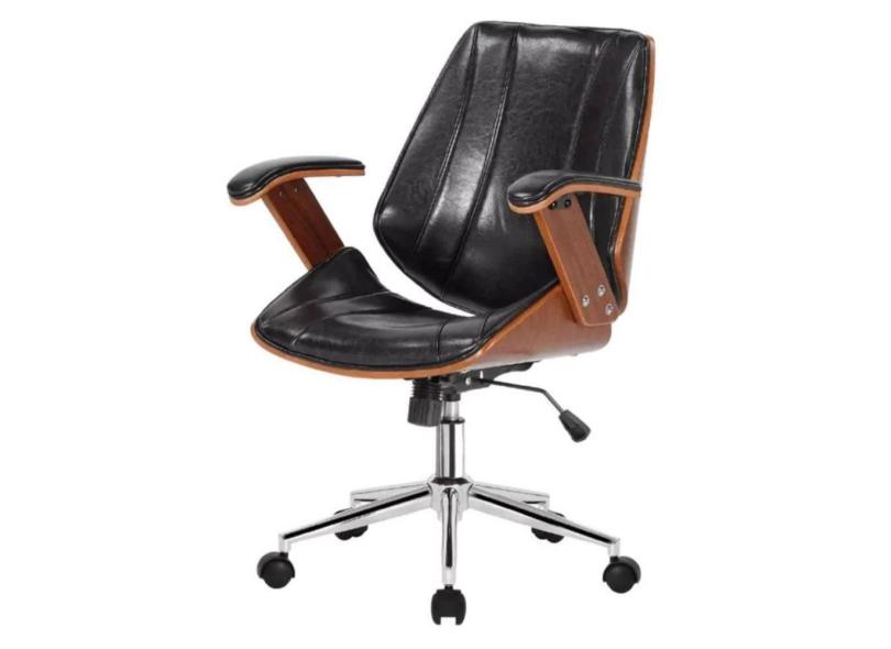 Cadeira Giratória Kopenhagenn Bergen Lisboa Fratini em Madeira Revestida em PU Preto Base Rodízio