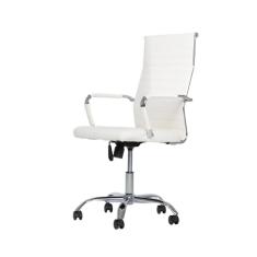 Cadeira Giratória Office Esteirinha Confort Rivatti em Pu Branco Base Rodízio Cromado