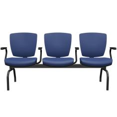 Cadeira Longarina 3 Lugares Aeroporto Recepção Preto Baixa Flexi P03 Vinil Azul - Lyam