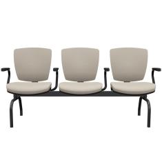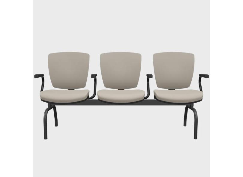Cadeira Longarina 3 Lugares Aeroporto Recepção Preto Baixa Flexi P03 Vinil Bege - Lyam