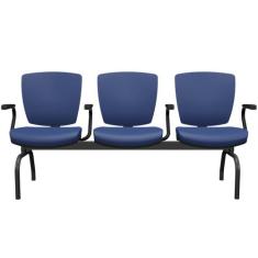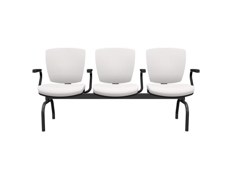Cadeira Longarina 3 Lugares Aeroporto Recepção Preto Baixa Flexi P03 Vinil Branco - Lyam