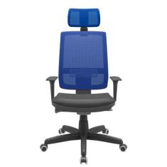 Cadeira Office Brizza Tela Azul Com Encosto Assento Vinil Preto Autoco