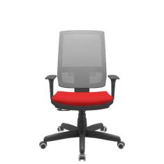 Cadeira Office Brizza Tela Cinza Assento Aero Vermelho Relaxplax Base