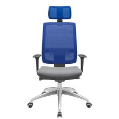 Cadeira Office Brizza Tela Cinza Com Encosto Assento Vinil Azul Autoco