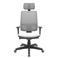 Cadeira Office Brizza Tela Cinza Com Encosto Assento Vinil Branco Auto