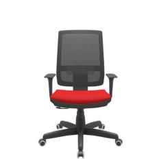Cadeira Office Brizza Tela Preta Assento Aero Vermelho Relaxplax Base