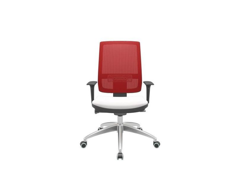 Cadeira Office Brizza Tela Vermelha Assento Vinil Branco Autocompensad