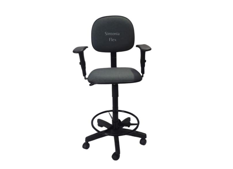 Cadeira secretaria caixa alta - braço regulagem - base de rodízio para recepção mercado balcão tecido cinza/preto