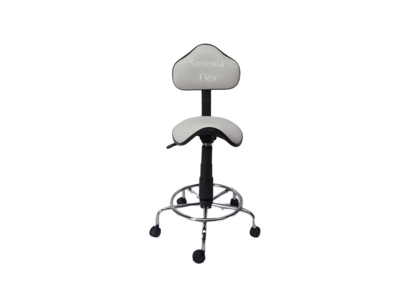 Cadeira sela estetica - regulagem de altura a gás - para dentista, manicure, tatuador, estrela cromada corano branco