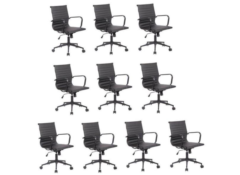 Conjunto 10 Cadeiras de Escritório Diretor Sevilha com Base Office aço preto Rivatti Preto