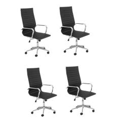 Conjunto 4 Cadeiras De Escrit rio Presidente Girat ria Sevilh