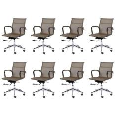 O menor preço encontrado no Brasil para Conjunto 8 Cadeiras para Escritório Diretor com Rodízios Tela Mesh Or Design Cobre atualmente é R$ 3.908,33.