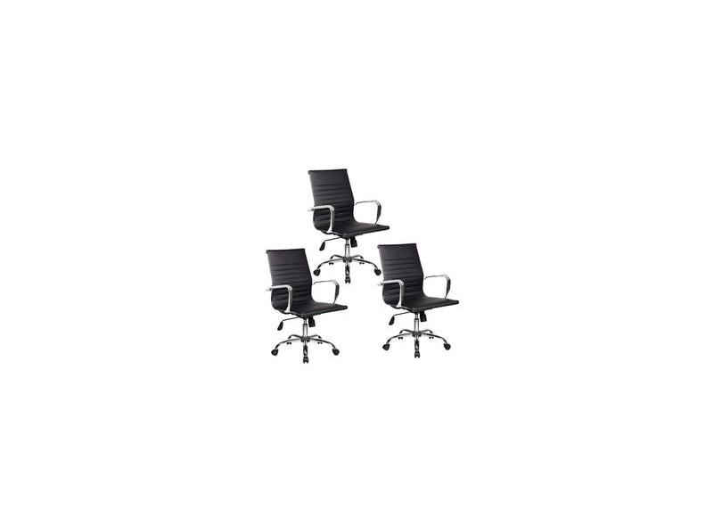 Conjunto com 3 Cadeiras de Escritório Diretor Boston Giratória Regulagem de Altura a Gas Esteirinha