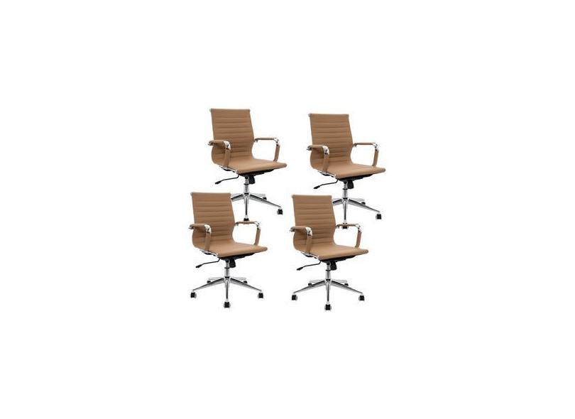 Conjunto com 4 Cadeiras Diretor Boston Giratória Regulagem de Altura a Gas Esteirinha Caramelo