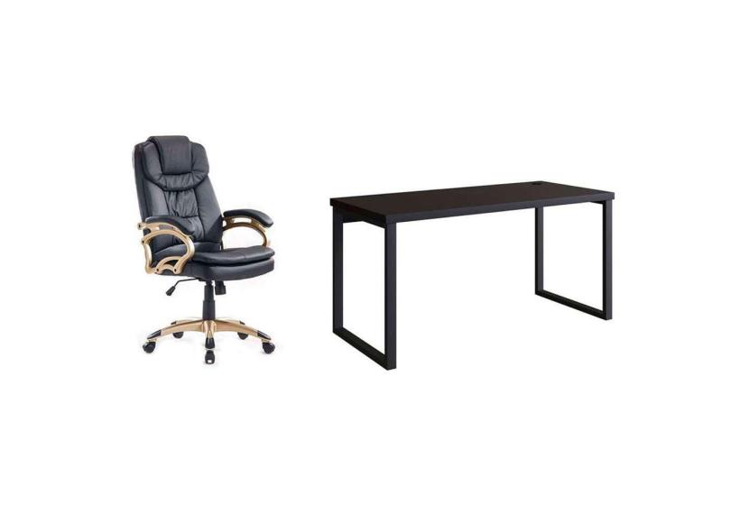 conjunto de mesa miguel 150 cm com cadeira de escritório presidente giratória com relax clark preta e dourada