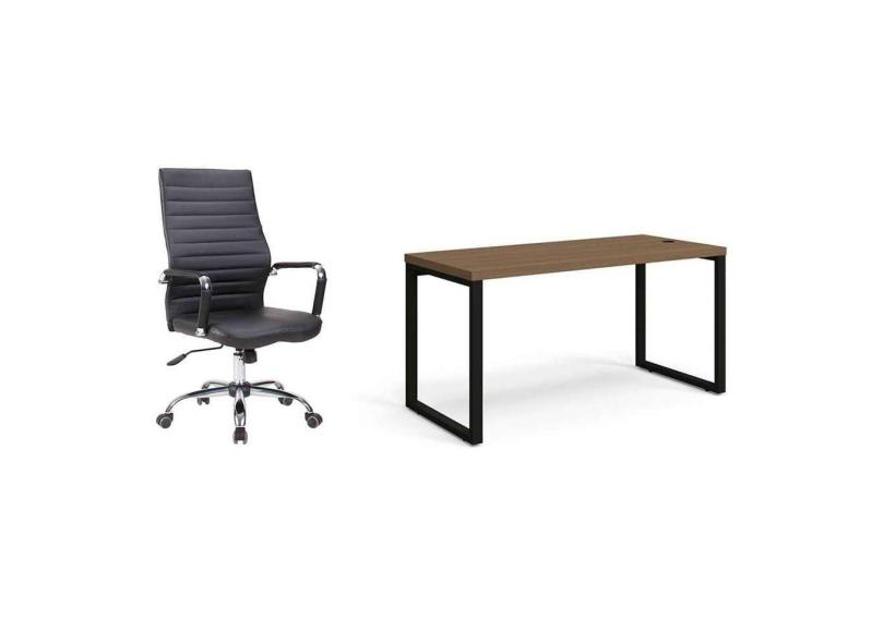 conjunto de mesa munique carvalho 150 cm com cadeira de escritório diretor giratória cleaner preta