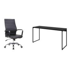 conjunto de mesa studio 150 cm com cadeira de escritório diretor giratória cleaner preta