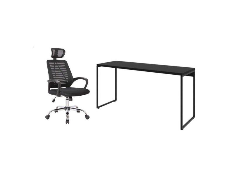 conjunto de mesa studio 150 cm com cadeira de escritório diretor giratória light preta