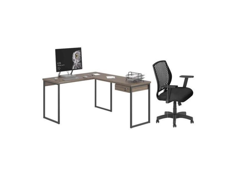 Jogo Mesa L Com Gaveteiro E Cadeira Girat ria Affara Preto