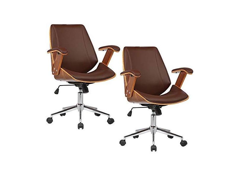 Kit 02 Cadeiras de Escritório Diretor Giratória com Regulagem de Altura Akon PU Marrom - Gran Belo