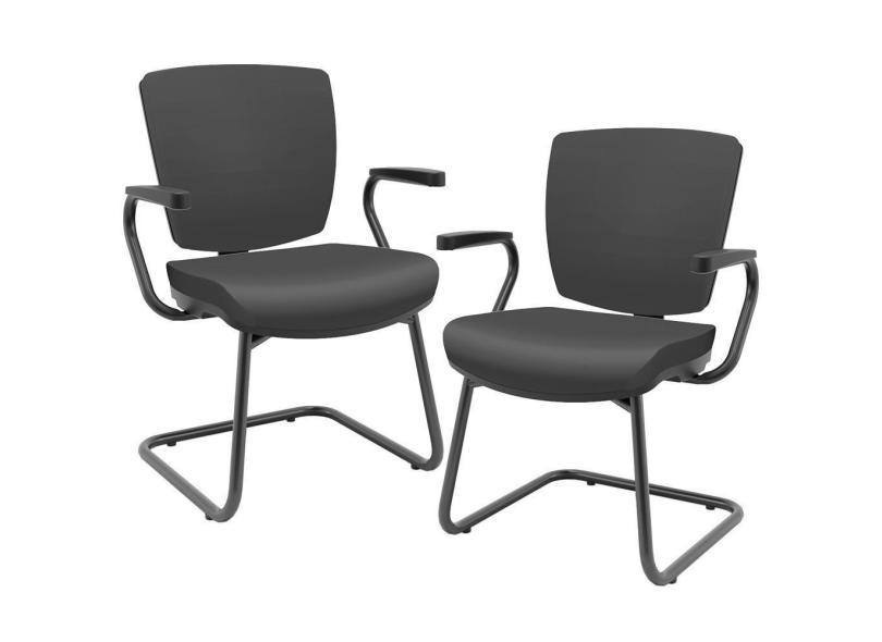 Kit 02 Cadeiras De Escritório Fixa Executiva Office Preto Slim Baixa Flexi P03 Vinil Preto